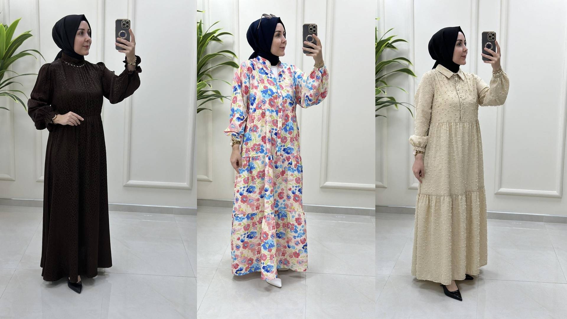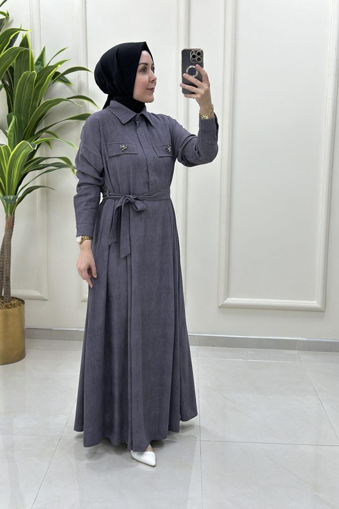 Ayrıca kuşaklı tesettür elbise modelleri, bel hattını belirginleştirerek daha zarif bir siluet oluşturur. Özellikle dökümlü kumaşlarda kullanılan kuşak detayı, elbiseye form kazandırırken stil bütünlüğü sağlar. Düz renklerde kuşaklı modeller sade bir şıklık sunarken, desenli modellerde de dengeleyici bir detay olarak öne çıkar.